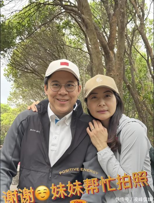 爬到山顶后,霍中妍主动提出给爸爸妈妈拍照。镜头里,郭晶晶很自然地挽着霍启刚的胳膊,头靠在他肩膀上。