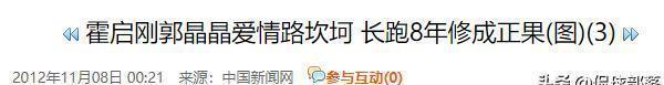 原文刊载于2012年11月08日中国新闻网关于“霍启刚郭晶晶爱情路坎坷 长跑8年修成正果(图)”